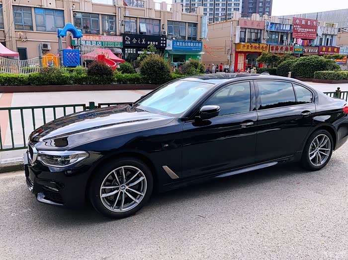之前的车是白色的,这次尝试一次黑色,配上5系的尺寸,M运动套件,还是挺酷的!18的轮毂比19好看,而且舒适!鼓包率大大降低!