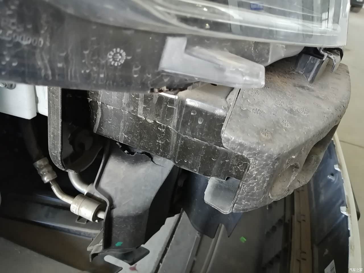 这是前边的,防撞梁上边有块减震泡沫包裹着。