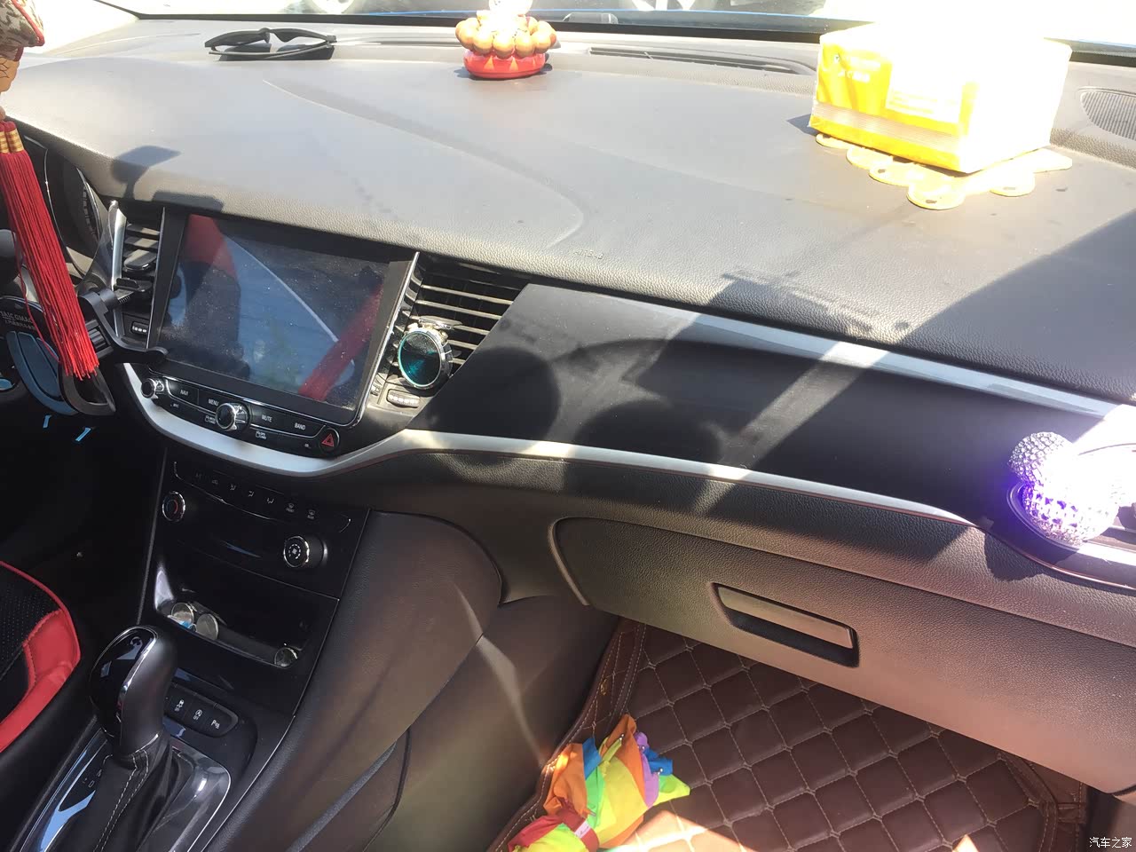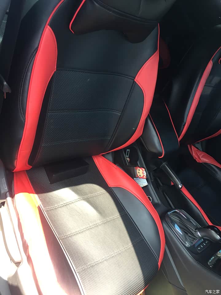 做的还是挺精致的,中控也是皮质 没有看上去很廉价的感觉,因为我不喜欢塑质感太多的 摸起来也不舒服,合资车就是这点让我非常满意,中控台设计的也比较合理看着就觉得舒服。总体而言很赞。蓝的外观 黑色内饰 黑色轮毂 黑红座套 就是赞~