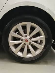 不知道是不是带个电池的原因,车子比较重,皮挺厚的,就是低配的这个轮毂,真的好想吐槽,原价20万的车,也太low了。