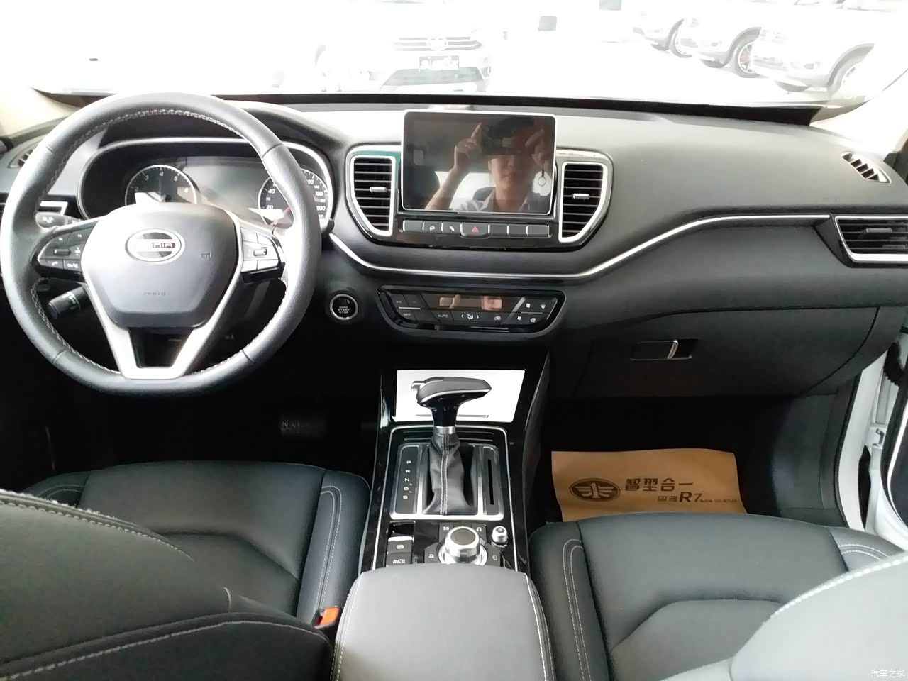 这是看车时拍的中控台,看上去是不是很高大上。八寸的中控悬浮屏,给邻居奥迪Q7的屏一样,还带手机互联系统,手机上的功能都可以在大屏上操作非常方便,再有就是7寸的液晶显示屏,销售员介绍说是同级最大的屏,油耗行驶里程都可以清晰显示,胎压监测也是R9标配,都可以在大屏上显示。是不是很贴心?这样就不用担心胎压不稳或是胎温过高造成意外的发生了。