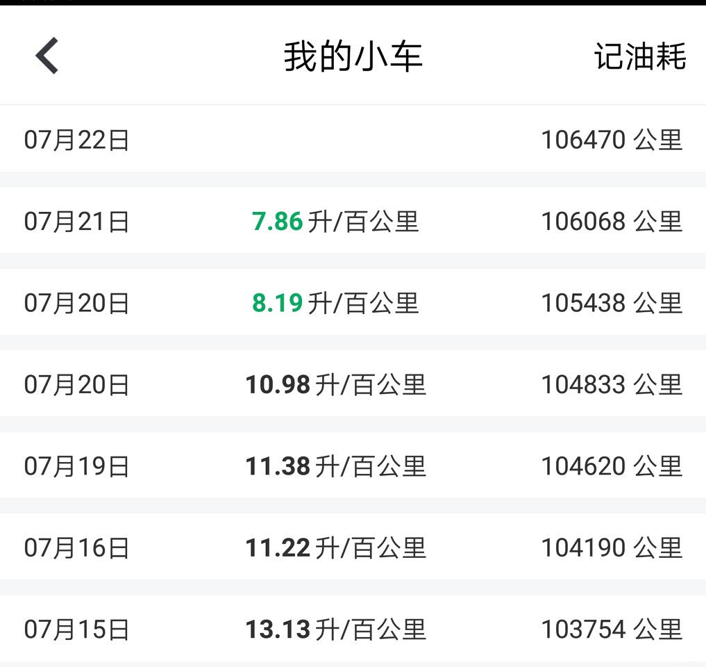 15到18号跑市区油耗高的吓人,18号晚上到21号在从成都去北京的高速上,越走油耗越低,低到不敢相信