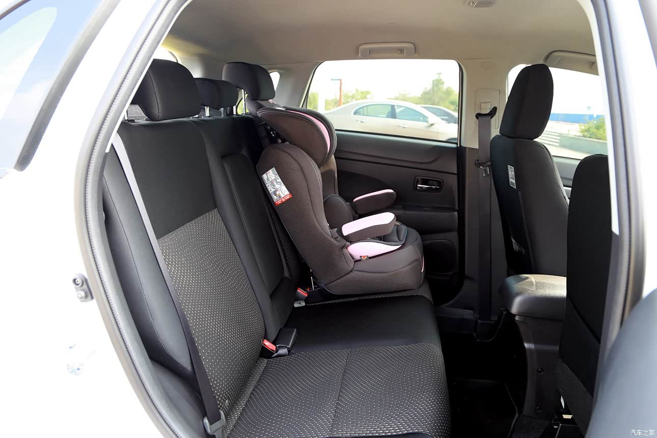 前排储物空间很丰富,可以放水和放手机的地方都很多,扶手箱的空间也很大,后排可以放东西的地方不多,除了后排中央扶手箱有两个杯架外,门板上也没有放水的地方。三菱对空间的利用还是有待加强。