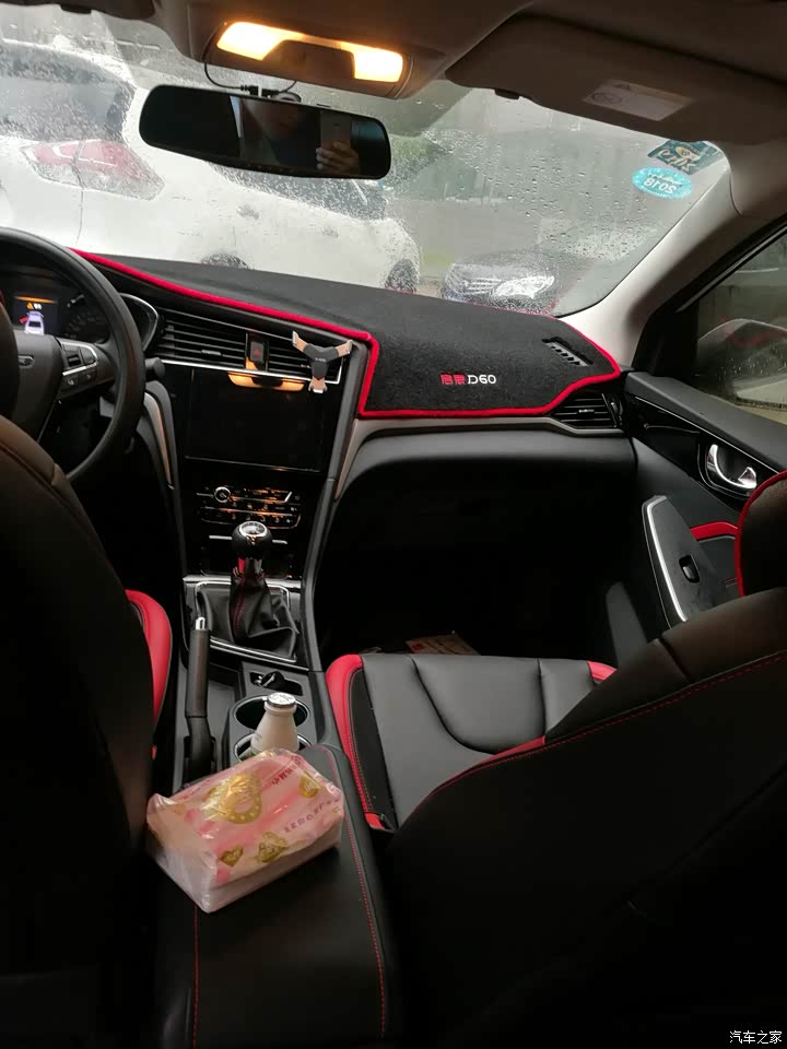 内饰干净整洁,黑红设计我的最爱,手能触及到的都是软塑料,仪表台都是软的