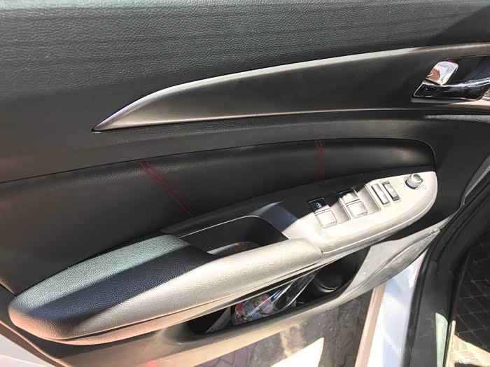 主驾驶位车门,包着一层皮,摸起来滑滑的。车窗升降,后视镜调节,车门锁,车窗开关都在这里可以操作。