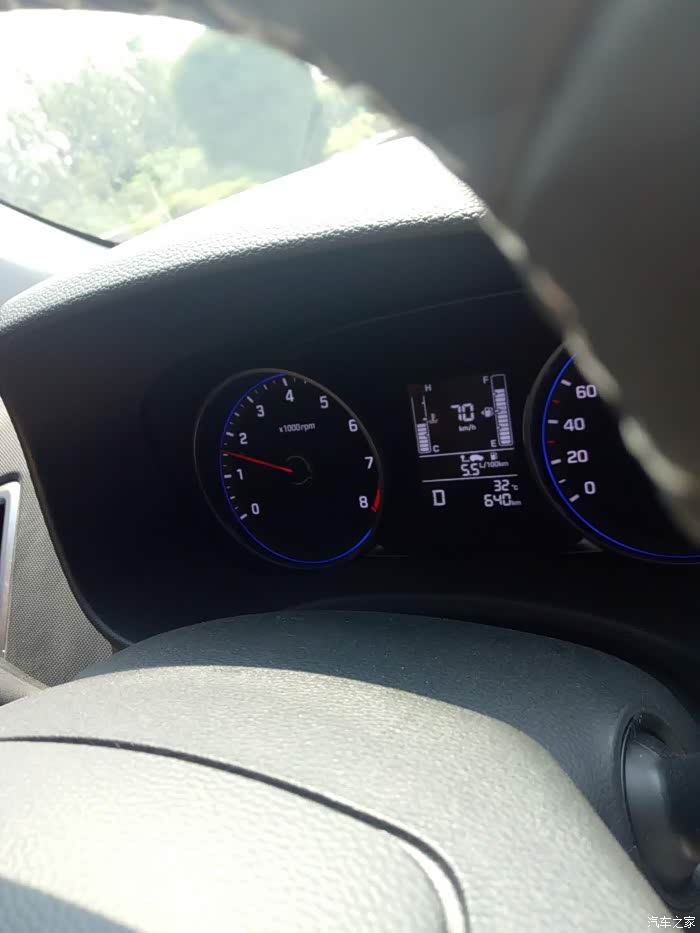 第一次上高速。车速一直控制在70到90之间。油耗很满意一直在5、5到5、4左右徘徊。老婆拿出手机定格在5、5加速还是不错的。
