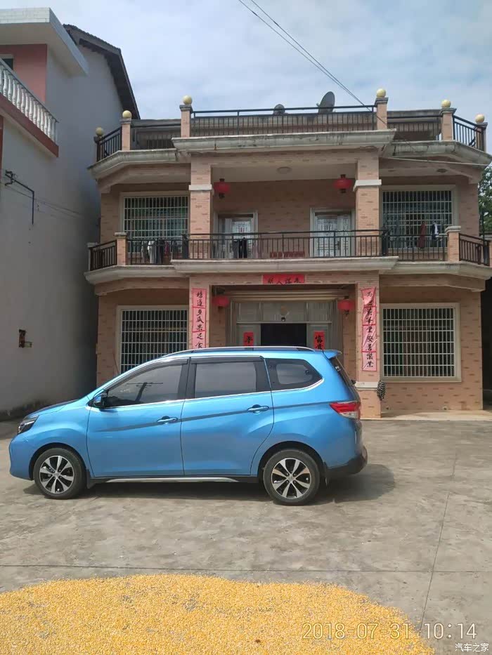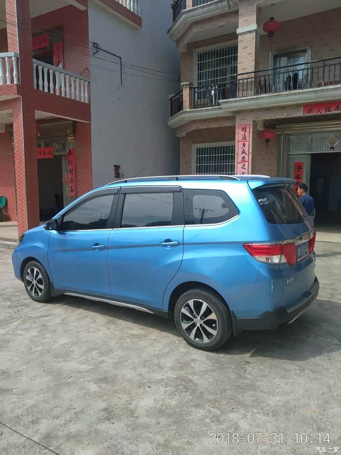 我选的蓝色是厂家主打颜色,个人感觉耐看,金属漆 关键是耐脏,耐脏!车正面看不错 侧面有点像低趴的SUV后面看就是面包车 最无耐的角度。