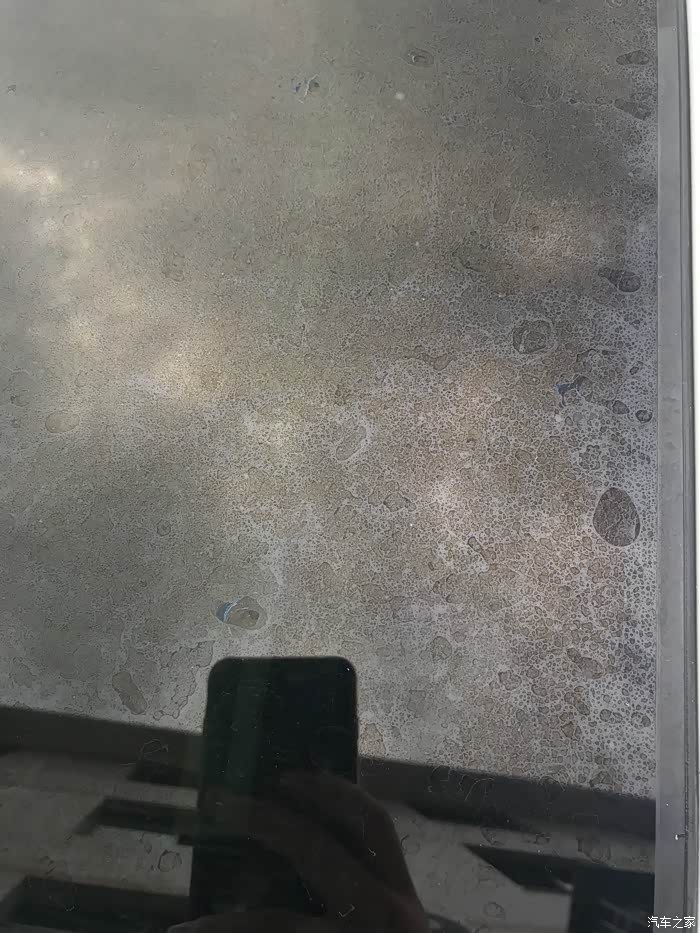 之前车停在工地边上,被他那个喷水的喷了一天,玻璃上非常脏,(下图是天窗的)完全洗不掉,洗车店没洗掉,柏油也没洗掉,抛光也不行,后面一老板不知道用了什么紫色的水,终于洗掉了。