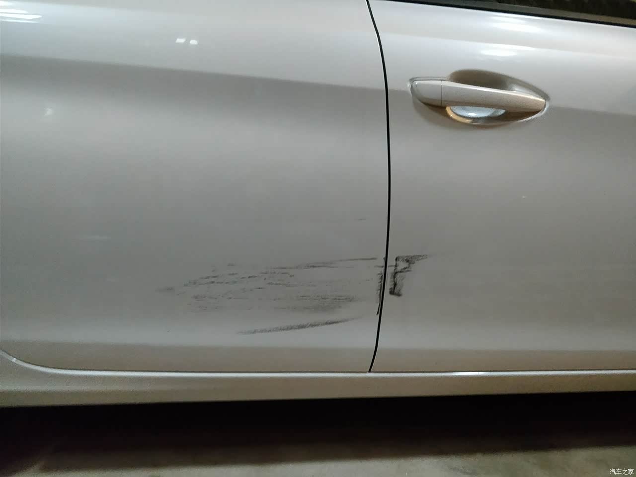 本来刮花范围还大一点的,现场已经拿毛巾擦掉了一点。