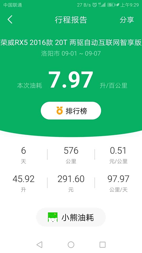 油耗大概在9-9.5左右,符合小熊油耗的众测