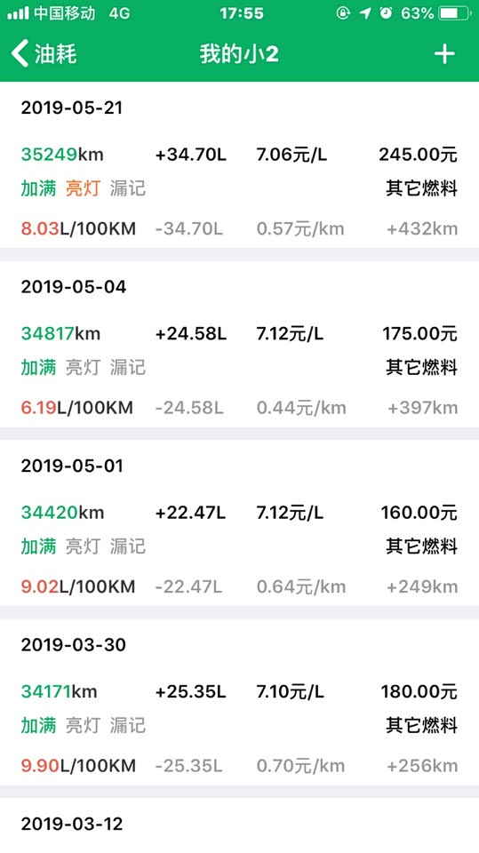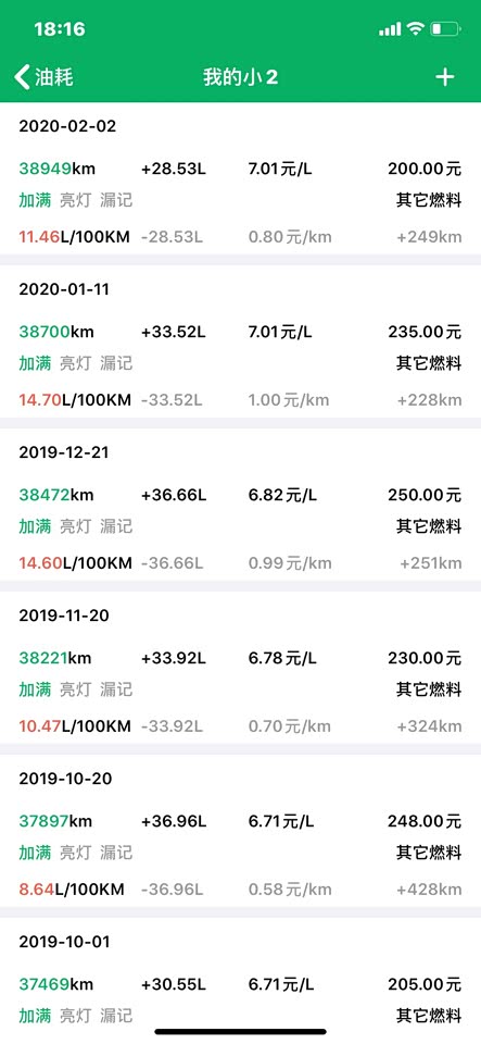 附上小熊油耗记录 四毛四一公里是跑的高速加开空调的油耗