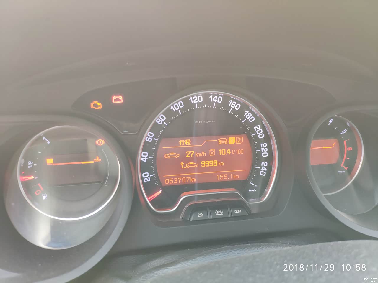 今天表显的油耗数值。