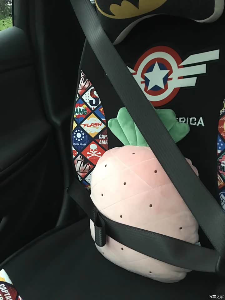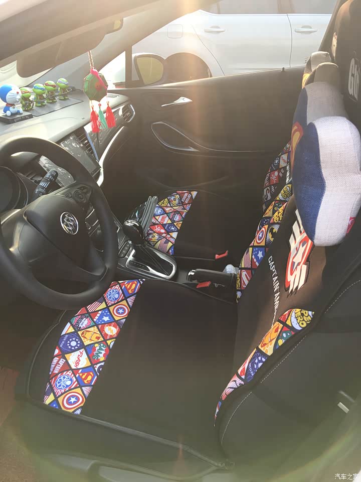 买车后的第二天,我就去买了一套座椅垫。一直喜欢超级英雄,这次也是买的这个款式的。特别帅,坐在车上心情都变的很好,我买的是自动进取型的,座椅不是真皮的,应该是布的。不过对我来说不所谓啦。布的也挺好的。