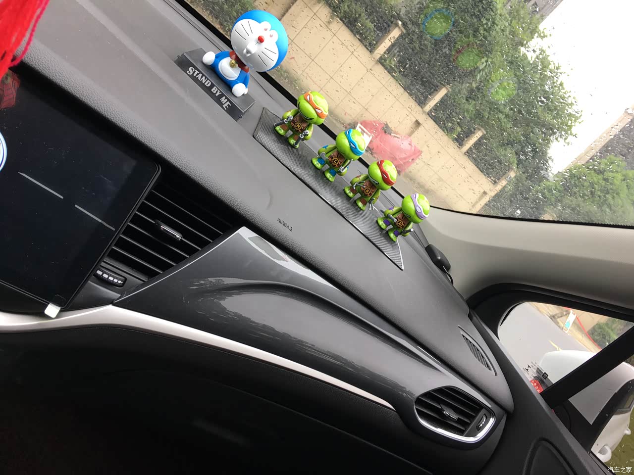 因为买的低配的,所以自己装了一个大屏。不过果然还是原装的好看啊,前两天还在跟我爸说买车的时候咋不买高配的,那个大屏很好看。内饰应该不是塑料的,按上去是软的,看着很高档。买这款车的还有一个原因就是内饰也好看。我还买了几个装饰物放在上面,车内更可爱了。就是我爸又说车内放这些不安全,要我拿掉。过段时间考虑换个小布艺玩偶。