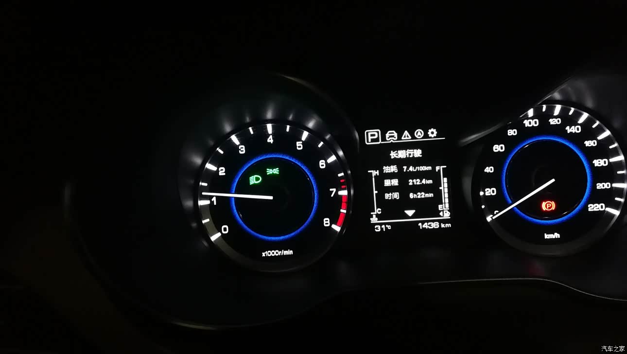 城市路段表显在8.3L/百公里,高速路段表显6.0L/百公里,国道速度在40到80之间油耗在6.5L/百公里。综合油耗实际测算根据加油的多少和跑里程数实际油耗在7.5L/百公里。这个油耗能接受还是表现不错,毕竟是在夏天全程空调,一公里在五毛七一公里,毕竟现在油价这么高。
