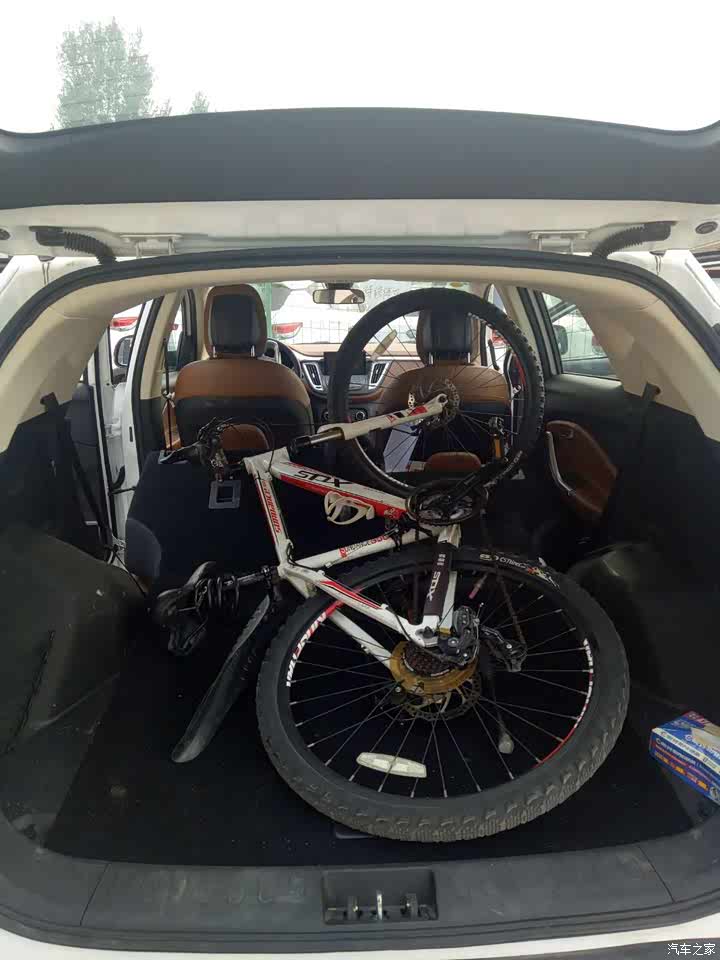 借用下朋友的照片,后排座椅放倒的情况下,轻松的装下一辆自行车,出去郊游就不用担心走的时间长累的慌了。