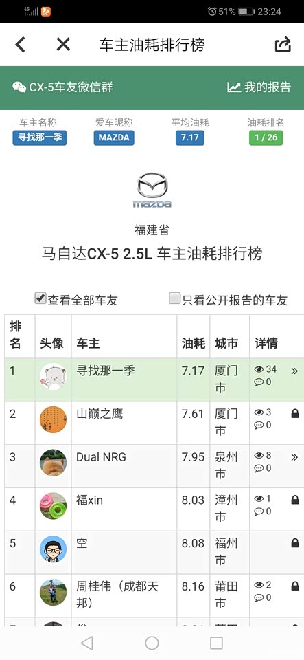 最近工作比较繁忙,也是好久没有开车了。近期油耗都是比较稳定的。打算明年把车给换了,主要是受不了走走停停给油顿挫和变速箱异响。准备入手一台丰田混动车。