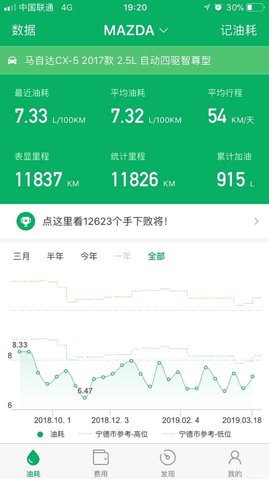 油耗比原来高了一点点,平均会多0.3个油这样,不过还能接受,可能机油得换了。不过小熊油耗统计油耗基本没啥变化。