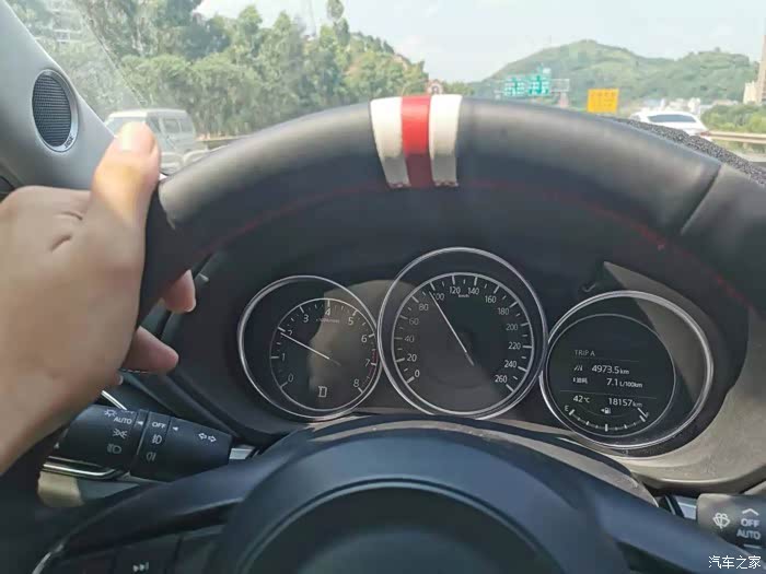 面对小坑洼这些路过滤的还是很好的,很从容,感觉悬架很有韧性,但是过一些减速带比较跳,速度快一些的话会砰砰的两声,而且感觉后轮有抛离感,家里的汉兰达过这些减速带没有这种情况,可能和车重和悬挂调教有关吧,毕竟还是偏运动调教,悬挂在过弯上支撑性很好,座椅舒适性适中,不会很软也不会很硬,对我来说刚刚好吧,就是包裹性差了点。轮胎比较挑路,走不好的路能感受底盘轮胎滚动声能传进车内,滤震信息较多。总体上我觉得噪音控制的不错,60公里以下还是有高级车的感觉,只有速度上到80或者转数超过2500噪音才会引起我的注意,很多人说cx5噪音很大,我不这么认为,同级别合资比荣放、crv噪音小,静音算不上一流水平,但是也能达到主流水平。