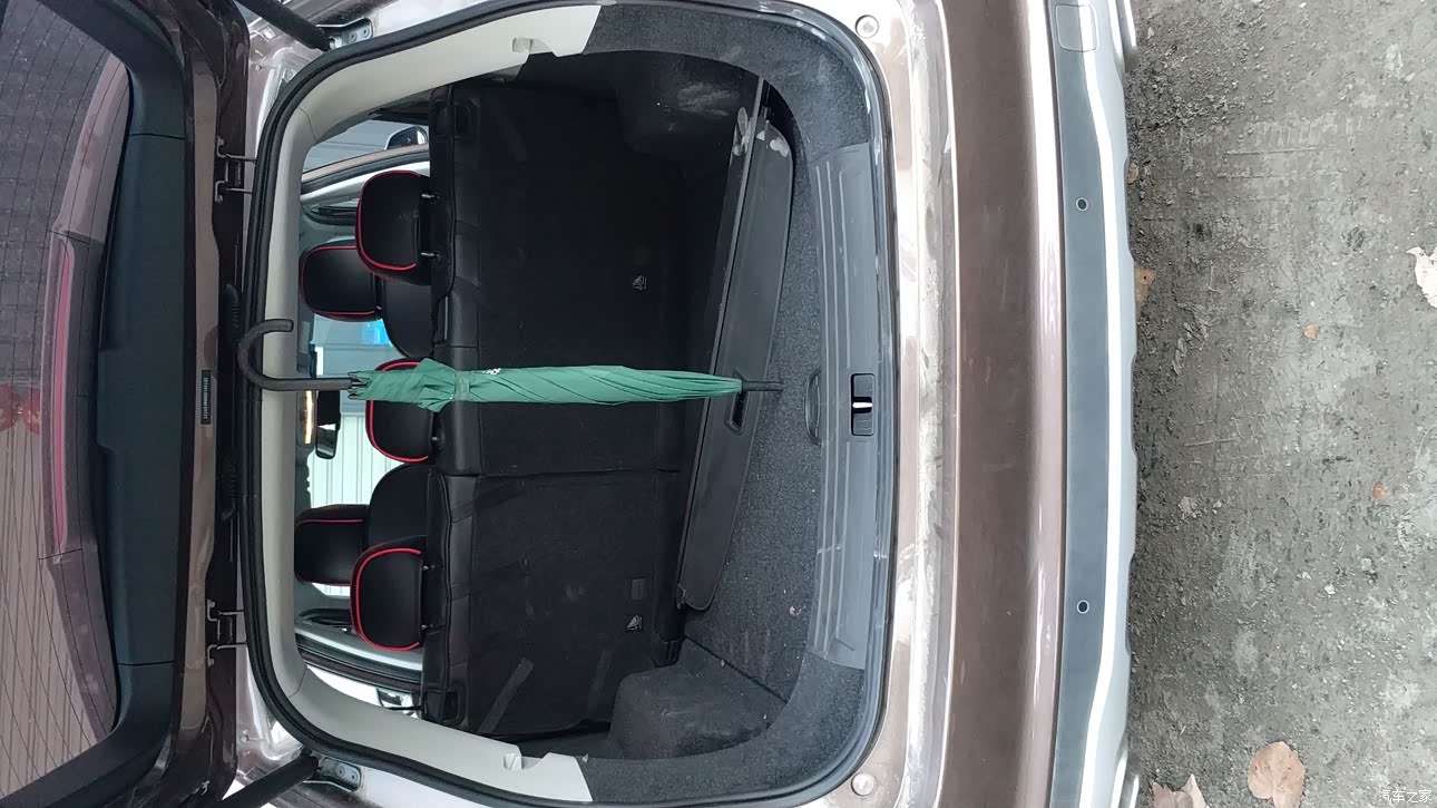后备箱空间一般,我用一把伞作为标准。你们自己可以看一下!这样车后排空间能有这么大,很大程度是牺牲了后备箱的空间。当然我觉得这是上汽本土化做的很好的一点,很了解中国人的特点而做出的创新设计。
