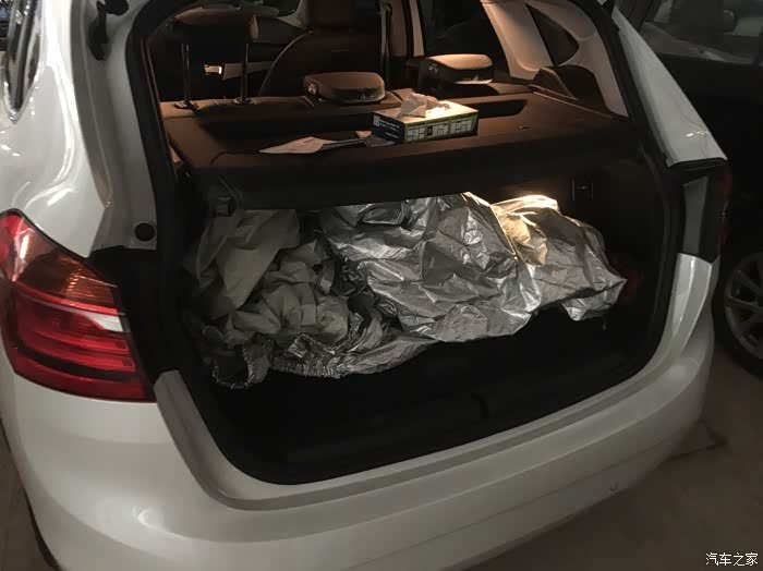 可以看到.一个盖车子的就占了后备箱接近百分百的空间.虽然这玩意可以压.不建议盖车.主要放不下布