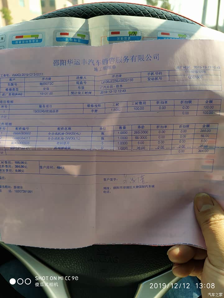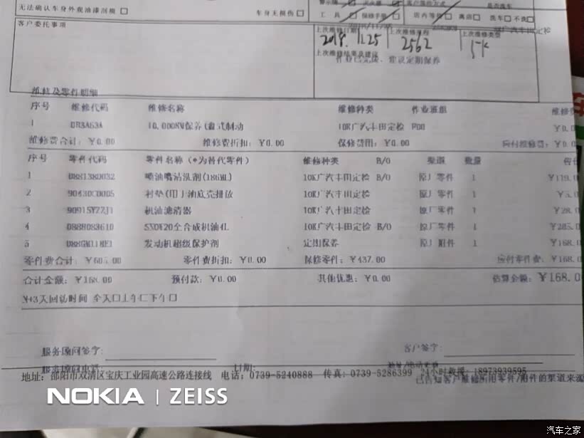 2019.2.12去做的首保,厂家升级换的sN0W20全合成机油,全免费!