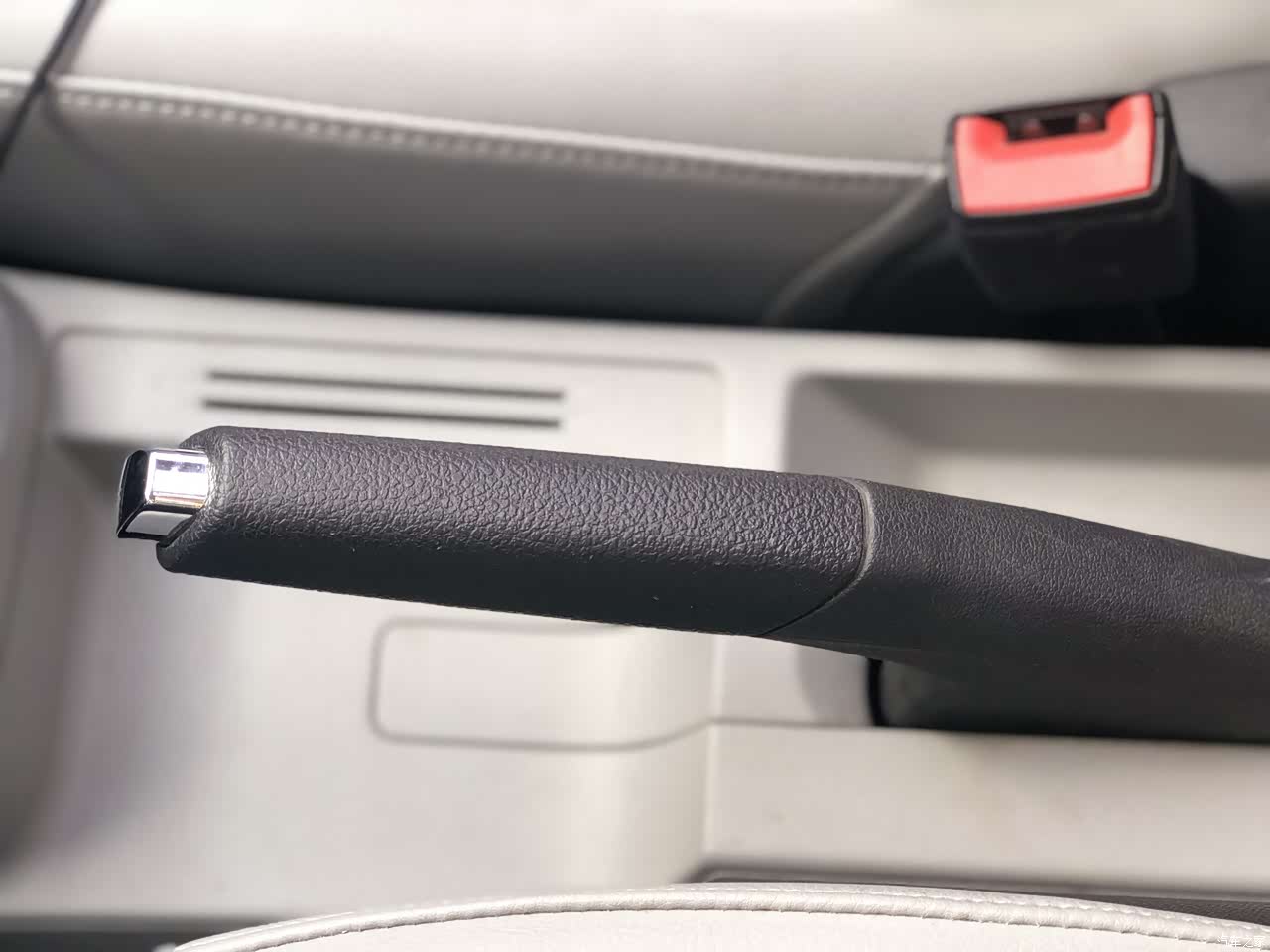 内饰简约,没有浮夸的设计。中控下超大储物盒,可以存放很多随手小物件。手刹旁的卡槽也很有用。