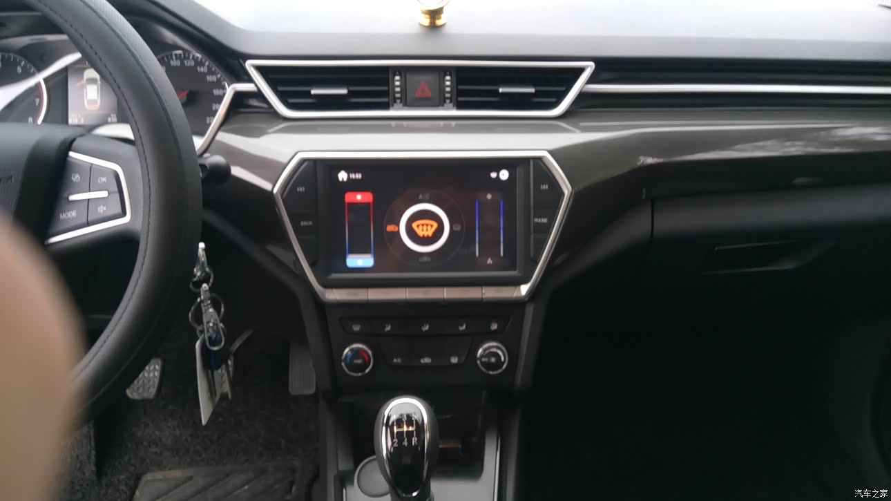 中控台简洁大方,没有多余的都是比较实用的,里面塑料感的比较好,做工细