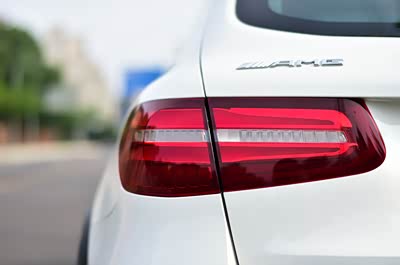 外观见仁见智,就不多说了。如果觉得难看就不会买它了。看过一些国产GLC的解析,进口车型在一些车身接缝、胶条包边细节上做得更好。这代大灯做得不错,造型简单,圆润中带着锐利,尾灯我觉得差点意思,更立体点就好了。我比较欣赏GLC43的一点是,如果不是带拉花的特别版,它在外观上跟国产GLC看不出太大区别,比较容易扮猪吃老虎。不过据说白色普通漆比较薄,容易伤,果断贴了车衣。