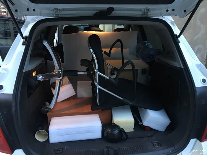 我身高170,坐进去座椅调到最高,就喜欢这样开,爽,不顶头。副驾驶坐过身高190的,也粗顶头,缺点还是有就是窄了点,那哥们腿部空间不美丽。呵呵!后排座椅基本上空着,三个人也坐过,挤挤呗,我感觉只有大型车不挤,啥车都挤,一般都是坐4个人。后备箱小了点,但是备胎箱可以放很多零碎东西。还是挺能装的。后排座椅放倒了就是小货车,搬家不输轿车,这就是买suv的理由吧!