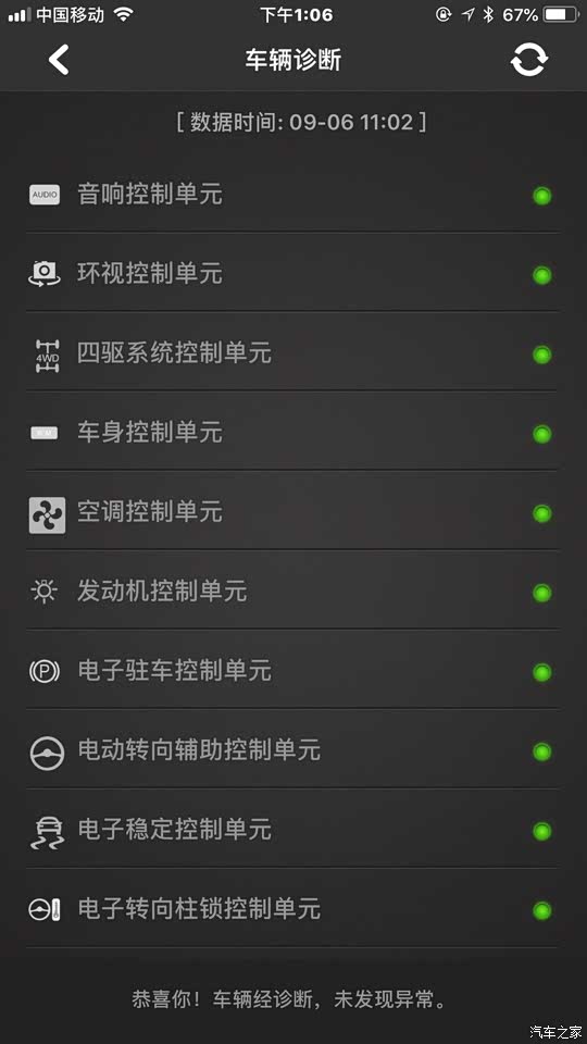 车辆诊断功能对整车21项电子控制刚能检测,对出行安全具有非常安全的保障。