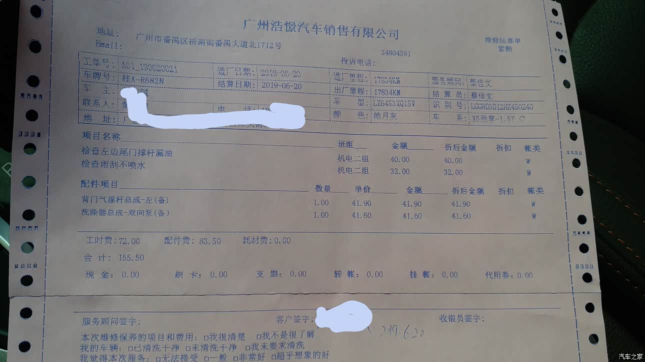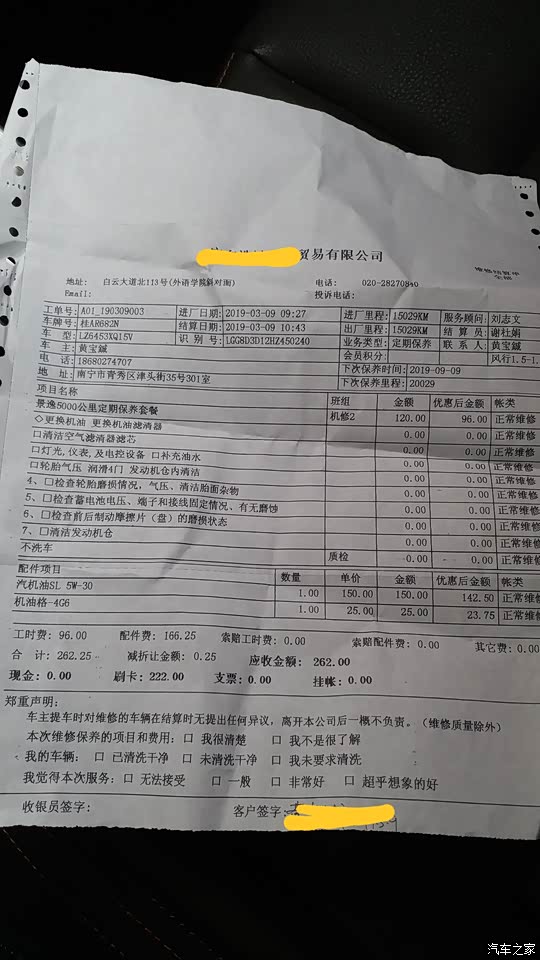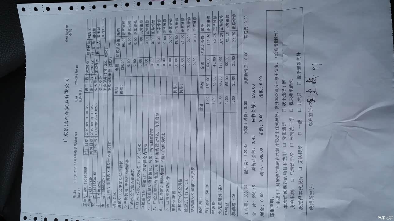 至今就做了两次保养。第1次是免费,第2次是常规保养406块,还有500公里就要进行3保了。保养只要按照手册上面的项目进行就好。