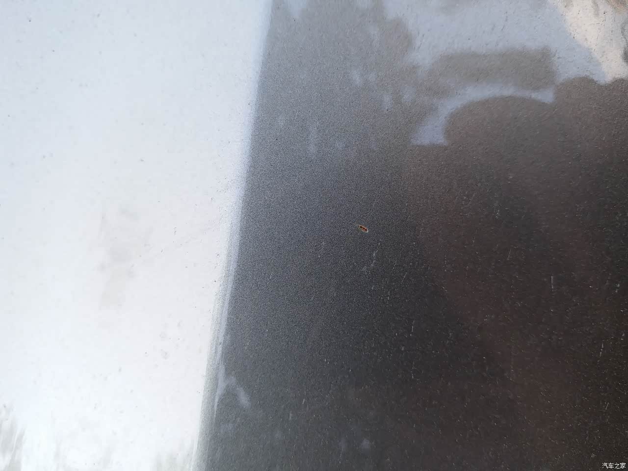 发动机盖上面,小石子碰的掉漆。