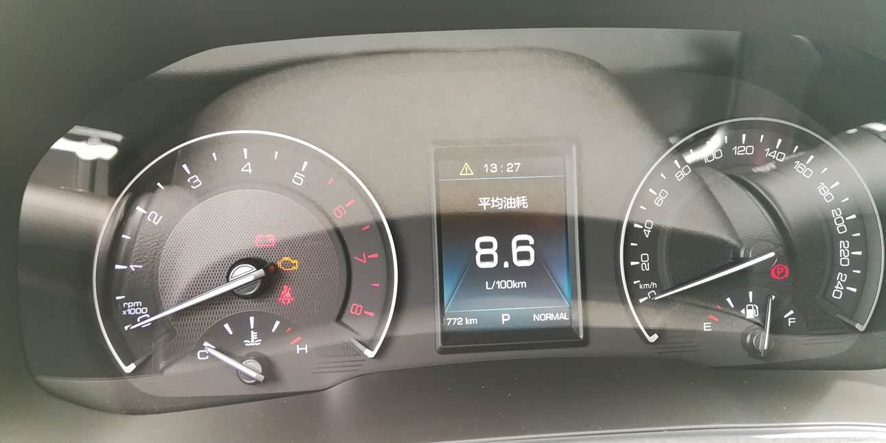 目前772公里,平均油耗8.6L/km,磨合期间这个油耗完全可以接受的。