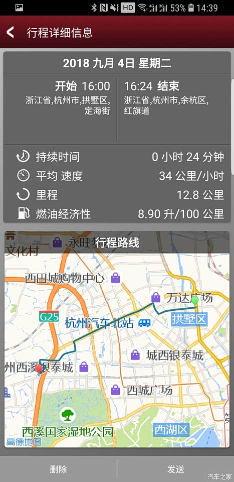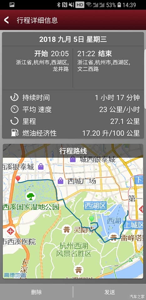 那天去西湖里面跑,其实油耗真的好低!其实前期一直是手动模式,油耗24,后来开了一段城市道路以后被拉低