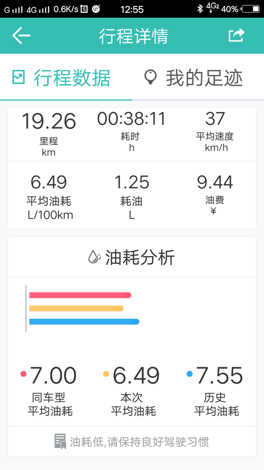 这是我用 行车电脑算的 如果道路再顺点 我可以跑到5.6油耗 当年用F0油耗还5.0 这个数值我还是挺满意的