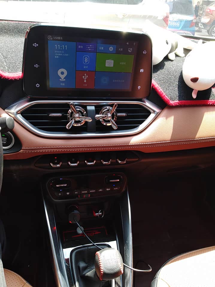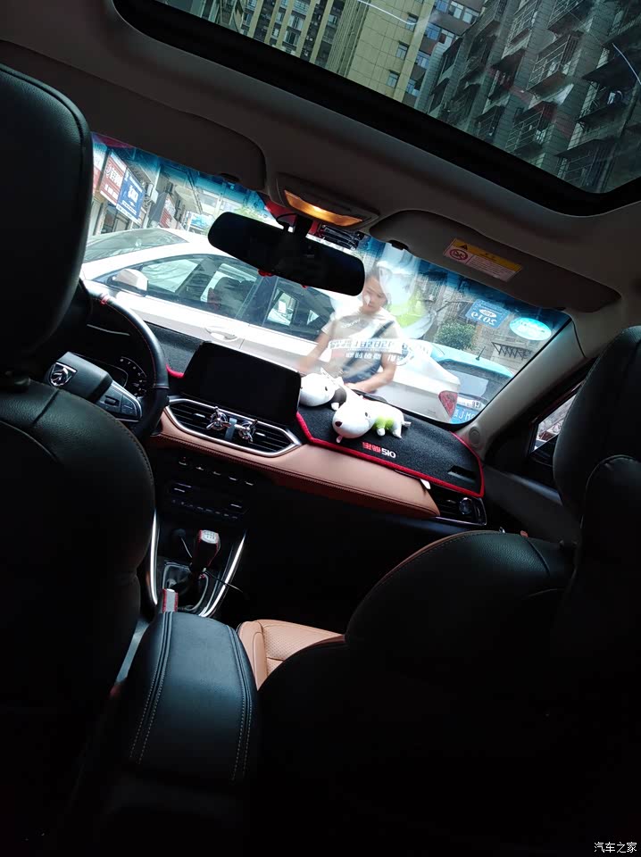 内饰用料基本是塑料,这个价位就别奢求了。不过整体及座椅颜色搭配合理,质量还行,异味半个月吧,就差不多没了。多功能方向盘、多媒体带导航带倒车影像、自动空调、全景天窗、电动座椅等等等等,不过多挑剔了。