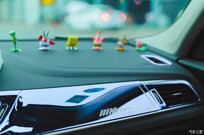 宝马一贯的设计。女朋友喜欢蓝色和海绵宝宝,就被我折腾成这样了…不然还是很简约的。耐看又好看。材料也还是不错,到处都是软的…屏幕也是够大…方向盘手感非常好,让人握着就想开。仪表盘相对太简单了一点,没什么特点,应该说相对比较素了。