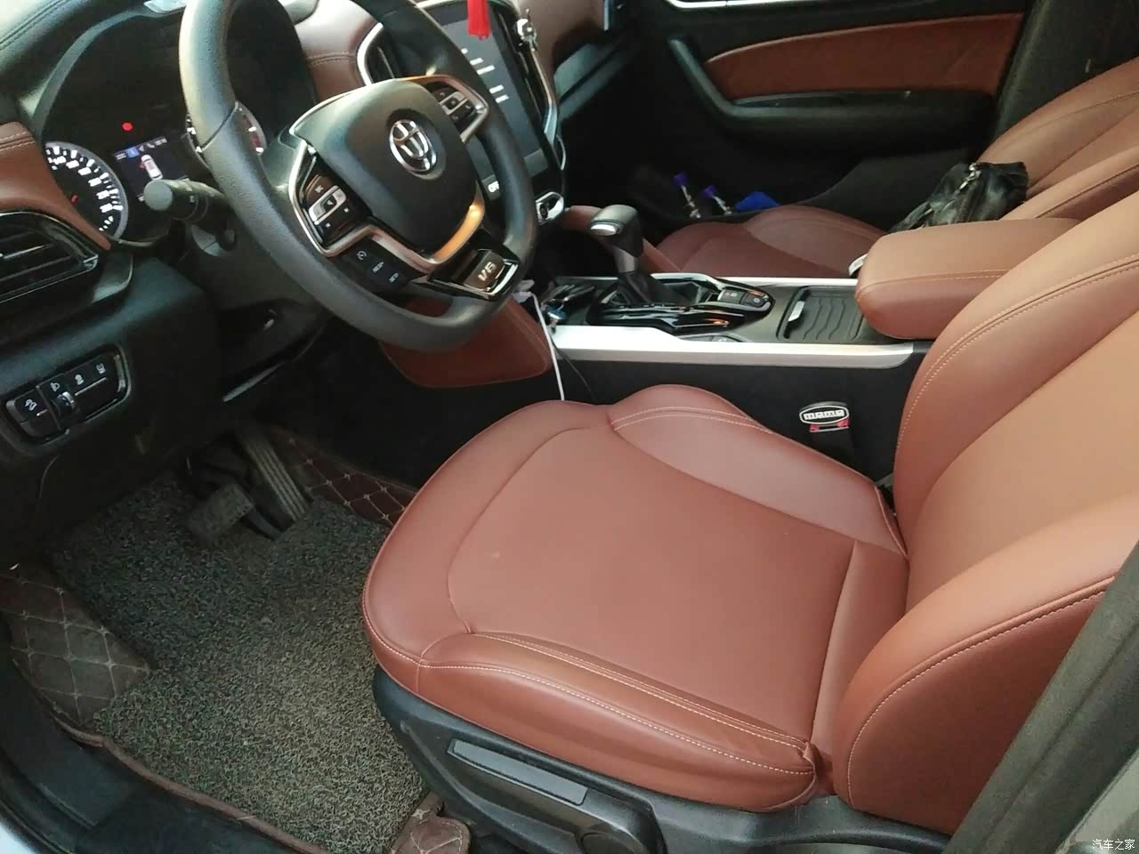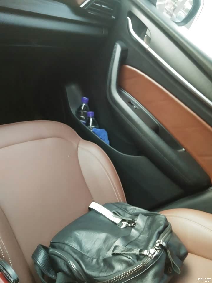 棕黑的内饰,亚光电镀装饰,精湛的木纹,小细节的皮质包裹门板仪表板,提升舒适性和档次感,个人感觉非常好