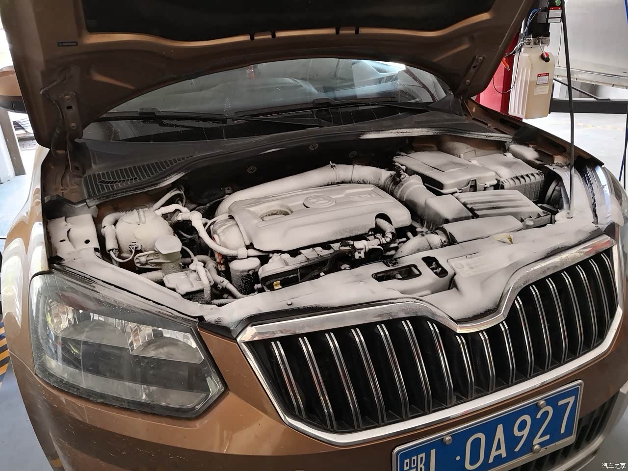 保养结束前的引擎仓清洗