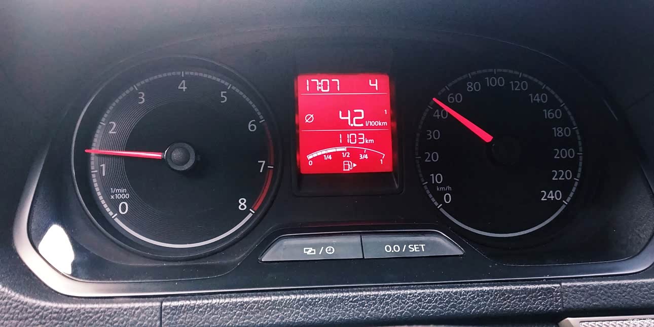 最满意的莫过于油耗了。每天上下班往返五十公里,最在意的就是油耗,苦逼工薪阶层不在意不行啊。车子目前开了有2300多公里,上下班路上红绿灯有大概七八个,一半是一分钟以上的,甚至有的路口一个红绿灯过不去。总体路况还算通畅,每次小计里程都在五个油上下,最低跑过4.2,最高没超过6个。我开车不算温柔,也不算太暴力。总体来说油耗算是我对这款车最满意的了。