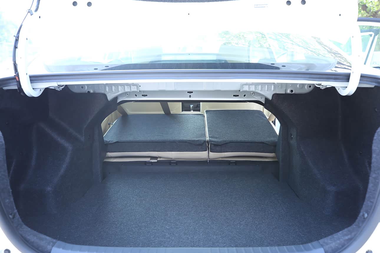 够大,能放两个个24寸箱子我感觉,还可以放倒,总体比起致炫好得多,毕竟三厢车空间有优势,实用为上。但是车内储物就不够多了。扶手箱放一点东西就满了,而且比较靠后没得枕手,别的地方空间也不算大。后排门板就只是门板了,别的地方中间有一个水杯架,没有后排扶手,我说没有扶手是因为现在国产车这个价位是能够做出一个扶手的。所以说车内储物空间只能说够用,但是不充裕。
