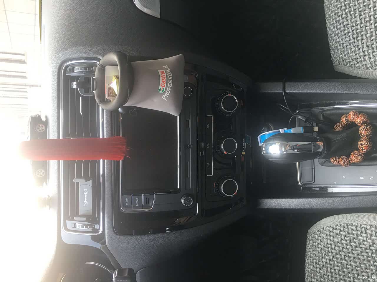 内饰的设计就比较大众一些了,大众普遍车型的内饰都长一个样子,方方正正,整整齐齐的,让我一度觉得大众的设计师有点强迫症。中控部分的硬塑料有点多,虽然是真皮方向盘,但是手感上还是觉得很一般,不过缝线做的还是挺细致的。