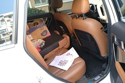 内饰我挺喜欢的,这种棕色的内饰给我的感觉就是比较有档次感,全景天窗也给内饰添加了积分档次感吧。内饰的用料也不含糊,中控台这块面积用都是软塑料,而且还是那种很浅的表面软哦,车门包裹用的皮质材料看起来是比较有档次感的,座椅用的是仿皮材质的,可以接受这种皮质,但是对于我觉得他的皮质材料有点冒充真皮的嫌疑。内饰总的来说还是非常令人满意的吧。