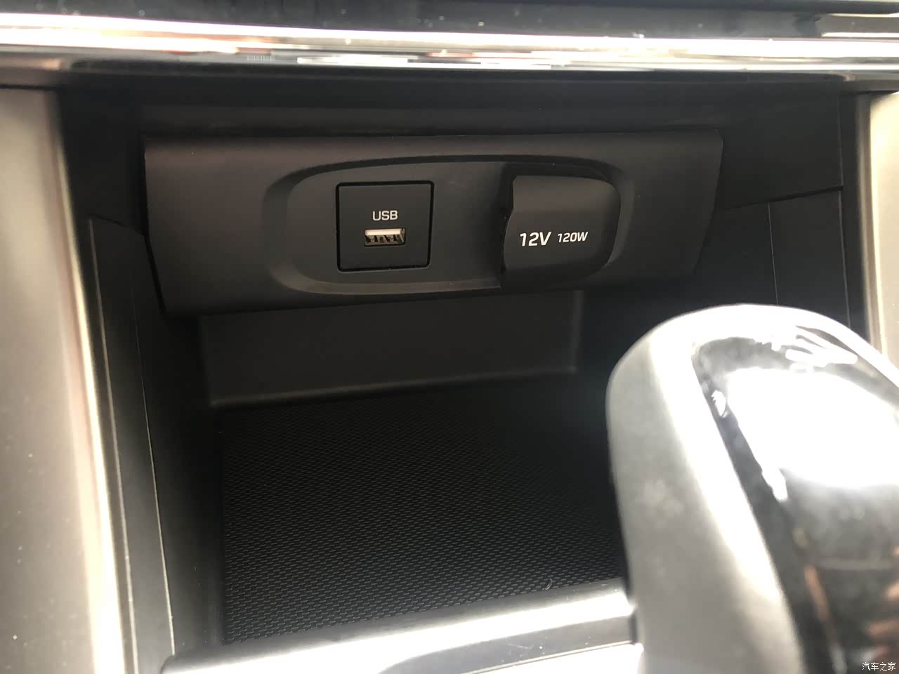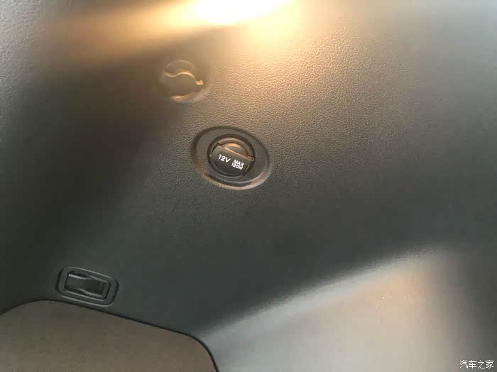 车尾箱还有一个12v的插头方便车载冰箱使用,旅游途中可以喝上冰饮料了。