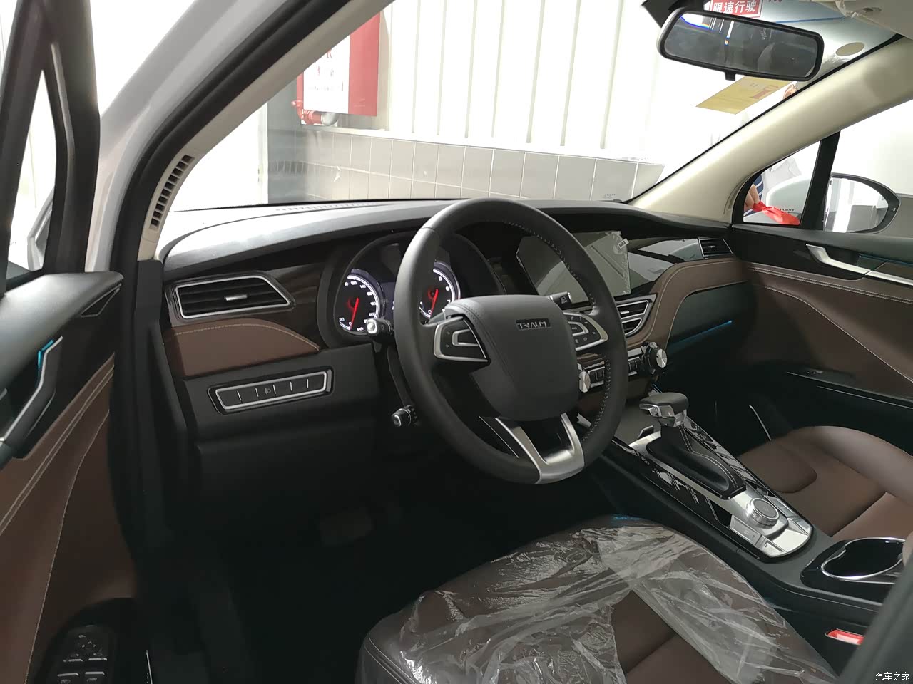 很喜欢棕色内饰,椅背上多了两块装饰的东西个人不是很喜欢,看起来很累赘,整体中控设计风格比较简约,个人还是比较喜欢这种简单风格。