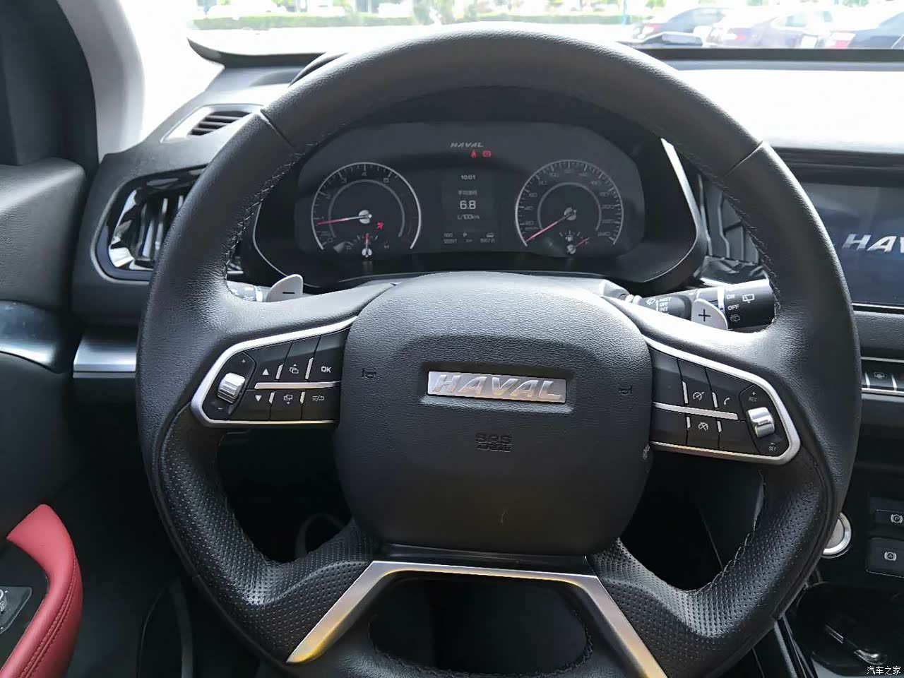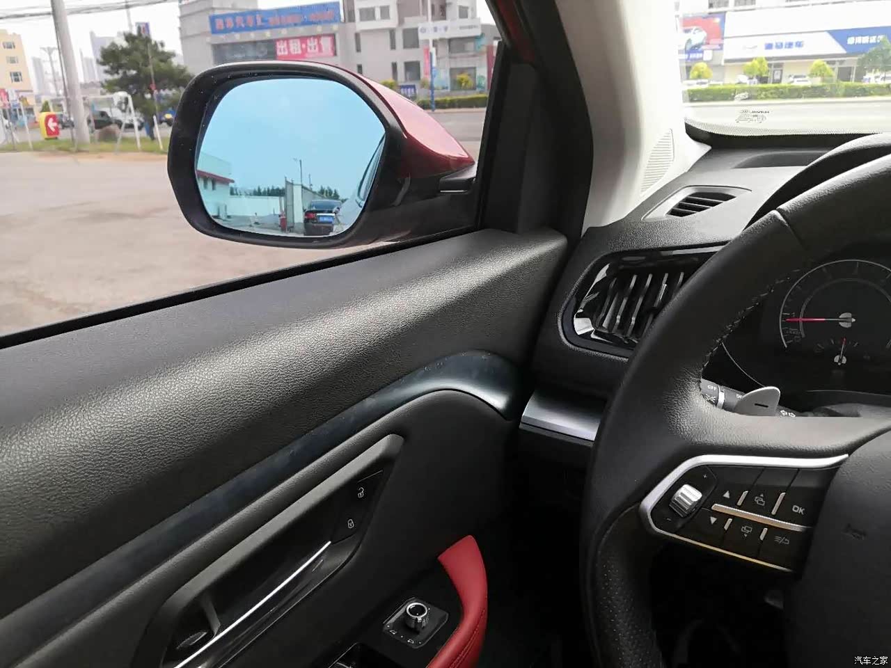 内饰空调很别致,别的空调都是小小一个,H2S的是一长条的,红黑撞色的座椅,扶手也是相当的霸气,让人一上车就有种心情好氛围,小细节,小小收纳盒,眼镜盒,还有个大天窗,其实天窗用的时候好少,但是人人都有,我也得有,对吧,不用可以,到我的有,