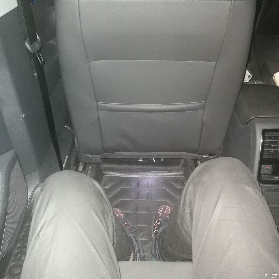 很给力,后排二郎腿随便翘,都能葛优躺。就是中间凸起较高,如果后排坐三个人,中间乘客可能不是很舒服。