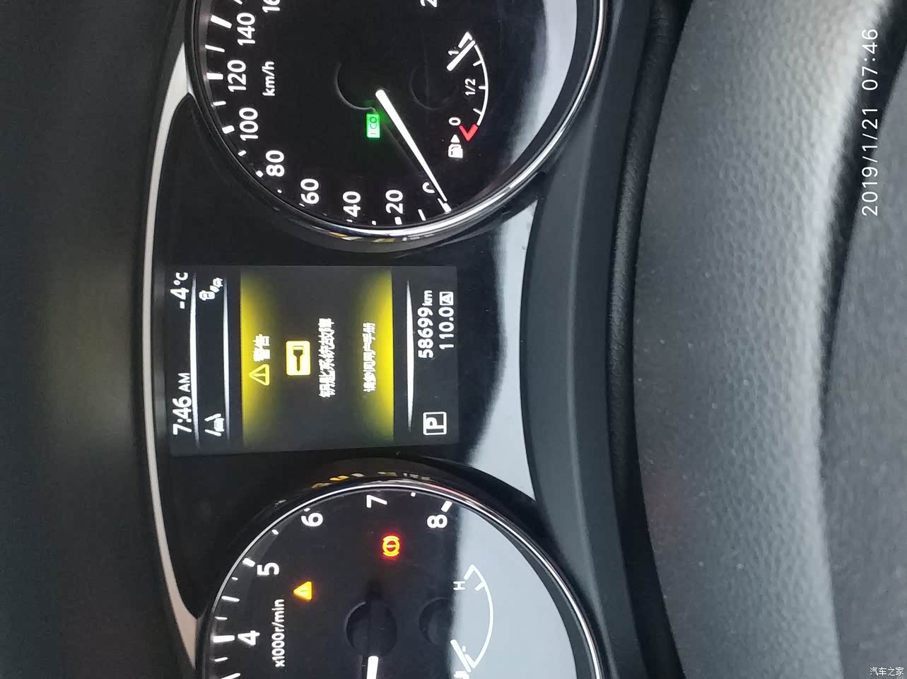 日产奇骏的故障没怎么遇到过,小故障到是有,不过重启就好了,这两天的小故障有一个,满箱油显示没有油了,而且出现了续航报警,续航577km报警,后来就好了。