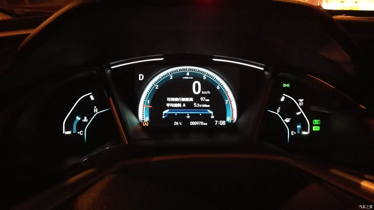 内饰很满意,设计很简约,感觉很清爽,没有乱七八糟老套的设计,很合我心意。提车时4S店就给我包好了真皮,但实际上是仿皮 ,有点上当的感觉,不过新车过一星期味道就很小了,仿皮带打孔也还行。思域的内饰,不管是用料还是设计风格,都比同级别的其他合资车要好,中控台和车门摸起来是有点软的。有人说思域满满的塑料感,我觉得纯粹是抹黑,二十多万的B级车也有很多塑料,不用塑料难到要用真皮或者铁皮嘛,手摸到的地方是软塑料就不错了。